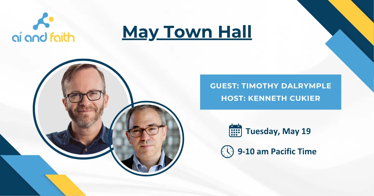 In AI and Faith’s May Town Hall, Kenneth Cukier will interview Timothy Dalrymple, president of the John Templeton Foundation.